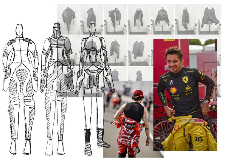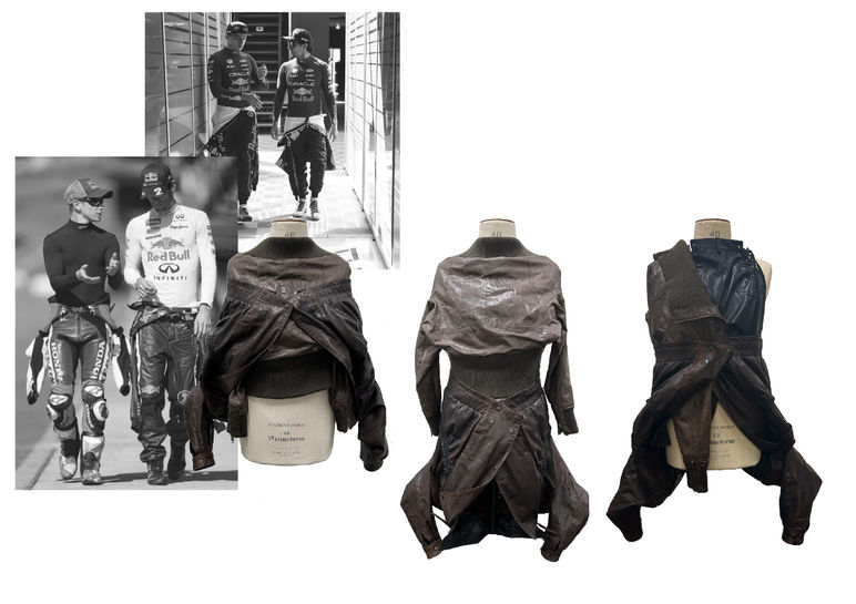 for this collection I took inspiration from motorsport racesuits, astronauts, and the heroes of Sci-Fi comic books to create a collection fit for a space age motorcyclist. I took a lot of inspiration for the shape of my garments from the way that Formula 1 drivers and MotoGP riders wear their racesuits between races and while their relaxing. this collection acted as a pre-collection for the project above